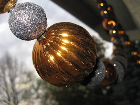 The silver balls are actually black IRL, but my camera is a sad joke.  Every house needs garland for Halloween.  Haven’t you heard?  Halloween is the new Christmas, except with rats and random body parts littering the front yard.