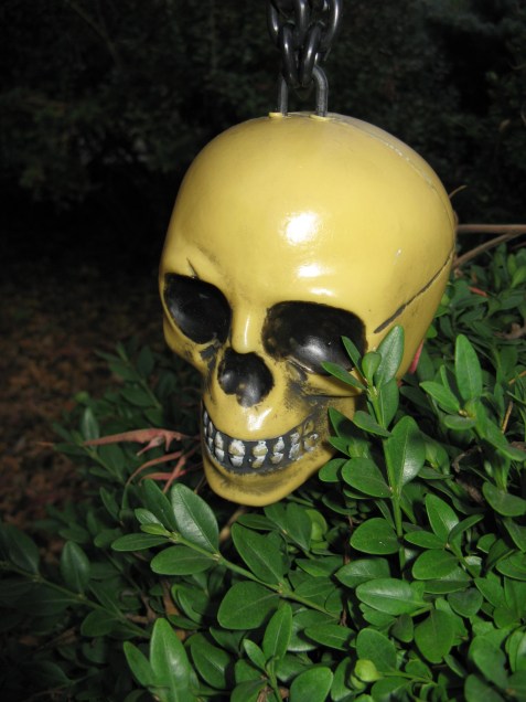 The first indoor decoration this year was this special guy E calls “Dead Chains”.  Nice.  He’s so cute.  Cocoon Man is now hanging from he chandelier, and the fireplace mantel is blinged out, but not in time for pictures.  I’ll catch them next time.
